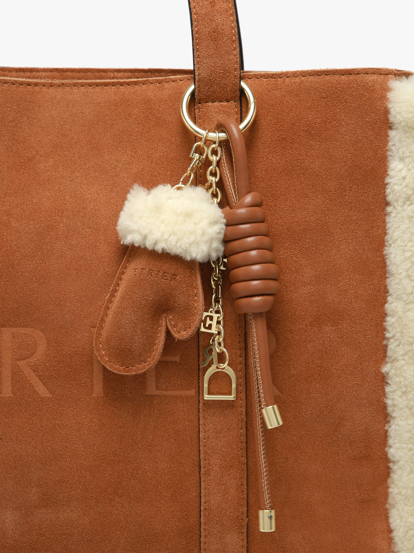 The ALPIN line shoulder bag by ETRIER combines charm and functionality. Made from velour leather lined with sheepskin, this small tote offers softness and authenticity. Its smooth leather back enhances durability for everyday use. Practical and versatile, it can be worn crossbody thanks to a removable and adjustable strap, suited to all preferences. This zippered bag features a well-organized interior with two slip pockets and one zippered pocket for your essentials. On the outside, a charm-style keychain reflects the iconic codes of ETRIER and the ALPIN collection: mitten, stirrup, and the brand’s letters, adding a distinctive touch. An elegant and versatile companion for your daily outings.