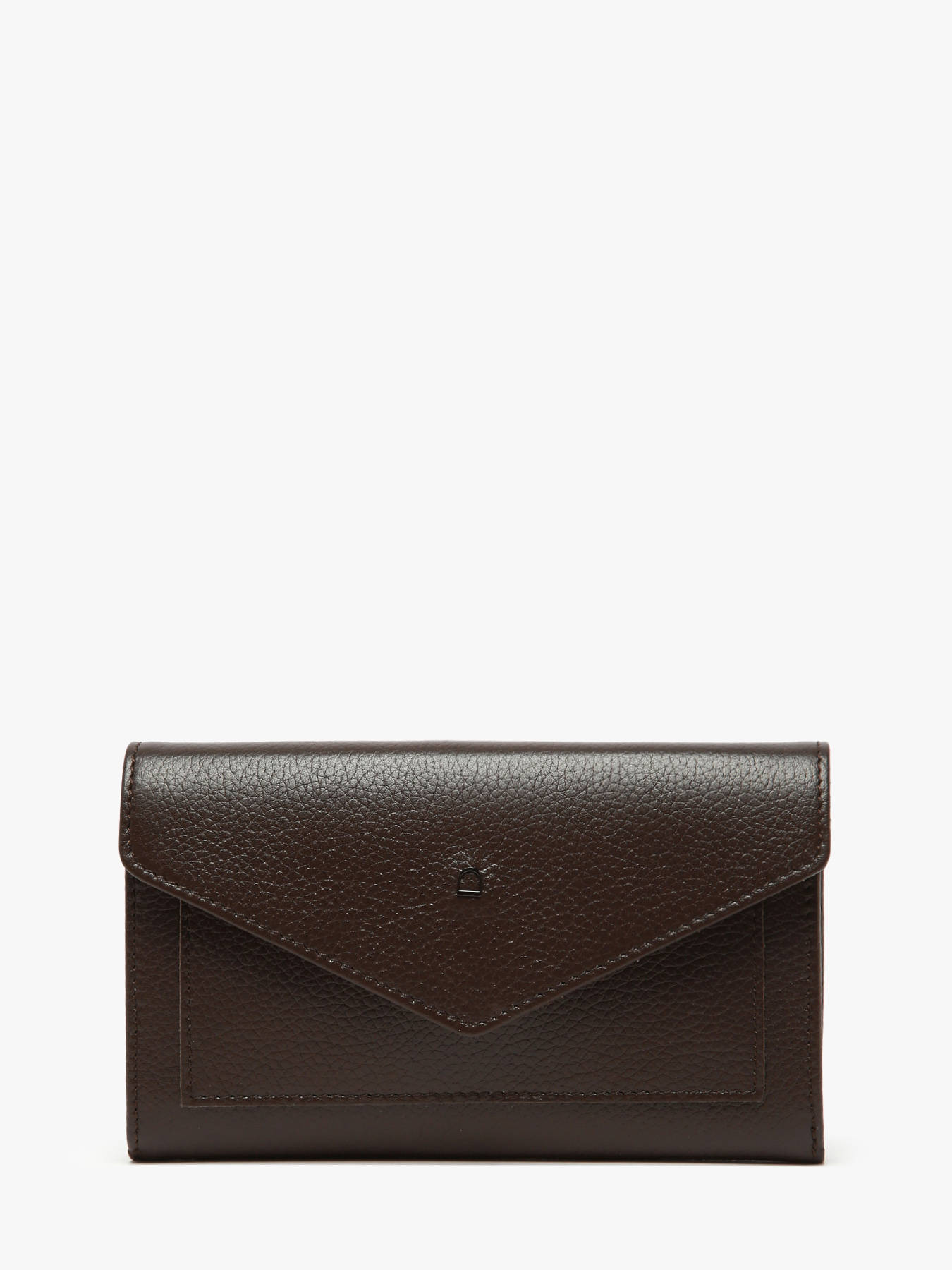 Un portefeuille élégant et tendance, grâce à sa forme enveloppe, signé Etrier. Compact et pratique, le portefeuille Madras se glisse aisément dans tout type de sac. Il dispose de trois poches simples, douze poches carte bancaire, deux poches billets et une poche zippée pour la monnaie. Il se compose de cuir et se ferme à l'aide d'un bouton pression.